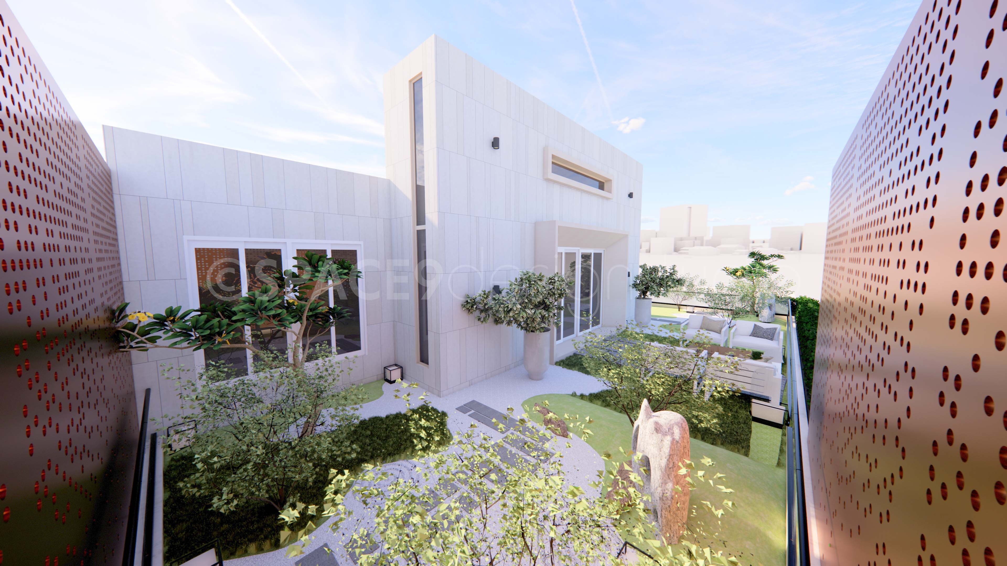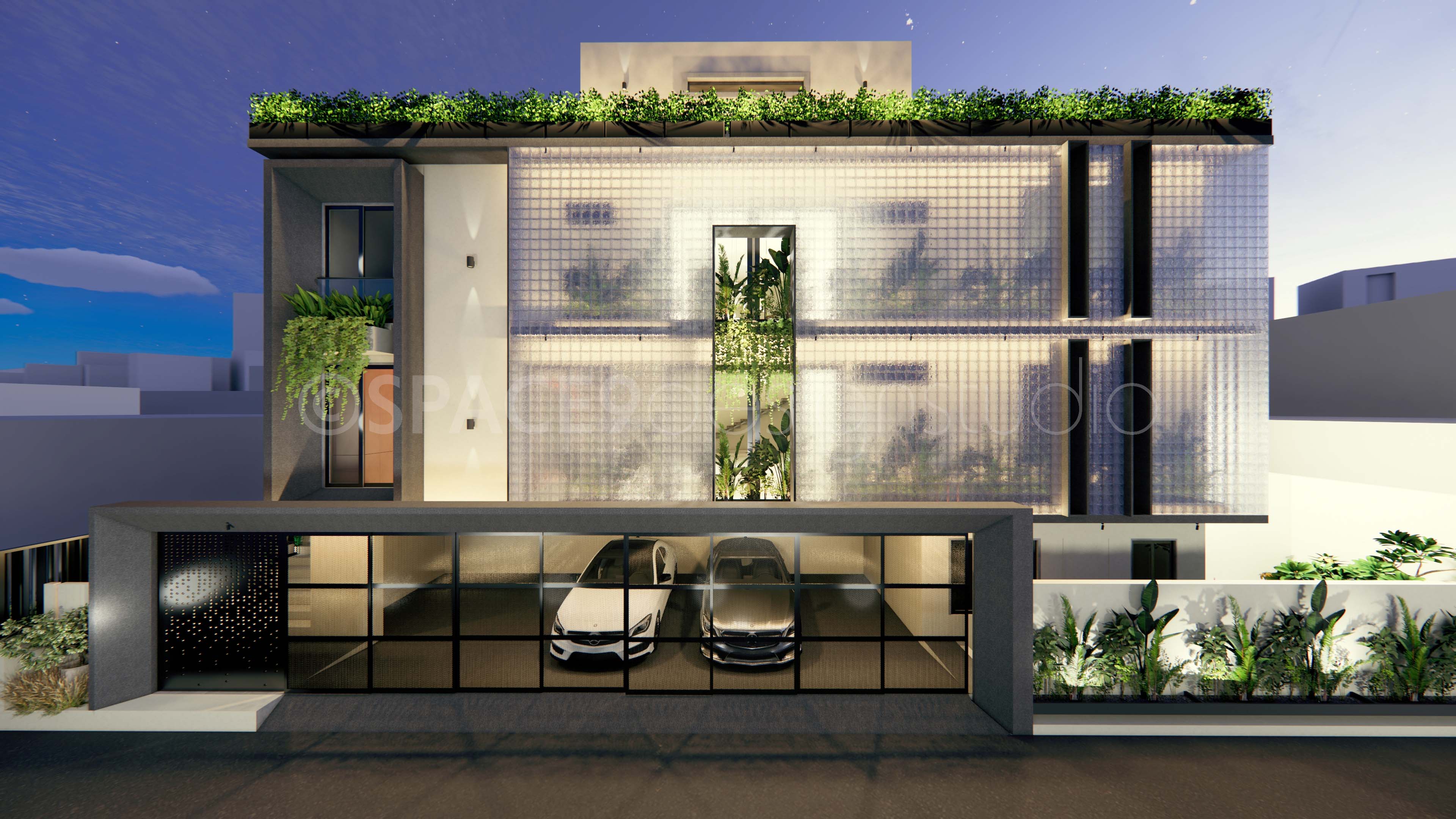 Nestled in a serene landscape, this stunning 10,000 sq. Ft. Bungalow seamlessly blends modern elegance with contemporary design. The striking glass block façade not only enhances the aesthetic appeal but also floods the interiors with natural light, creating an inviting atmosphere throughout the home. Central to the design is a beautifully landscaped courtyard featuring a majestic mango tree, providing a tranquil focal point and a connection to nature. Adjacent to the courtyard lies an exquisite swimming pool, harmoniously integrated into the design, offering a perfect retreat for relaxation and leisure.