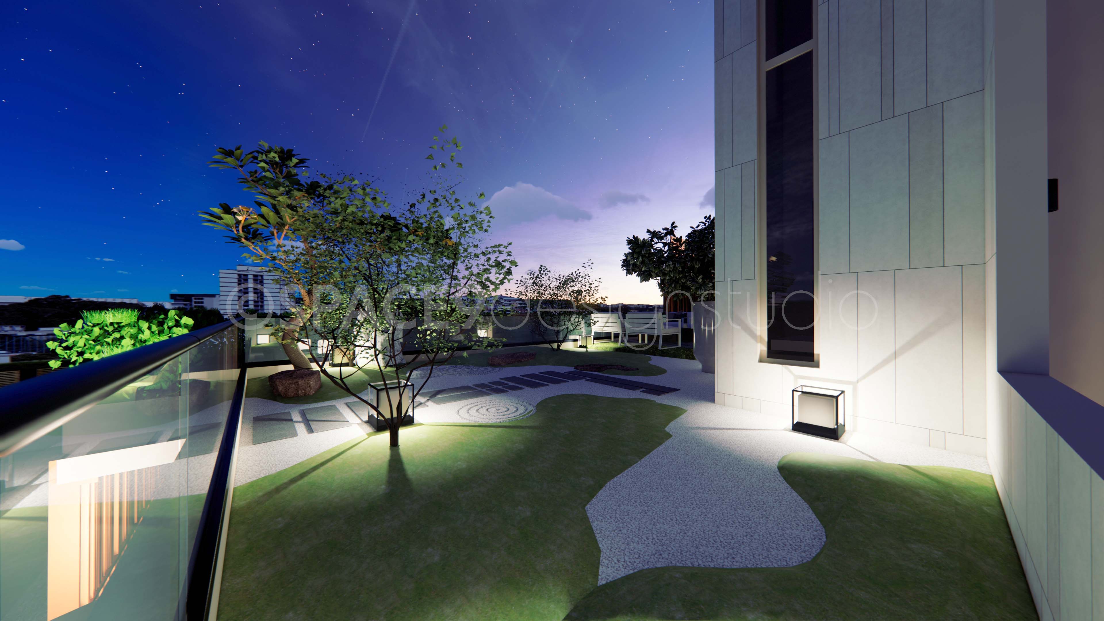 The bungalow is thoughtfully planned with expansive openings on all sides, utilizing sliding glass doors to facilitate optimal air and light circulation. This seamless indoor-outdoor living experience encourages a harmonious flow between the interior spaces and the surrounding environment. Natural materials are prominently featured throughout, further emphasizing the commitment to sustainability and organic aesthetics. Each space has been meticulously designed to promote comfort and functionality while celebrating the beauty of modern architecture.