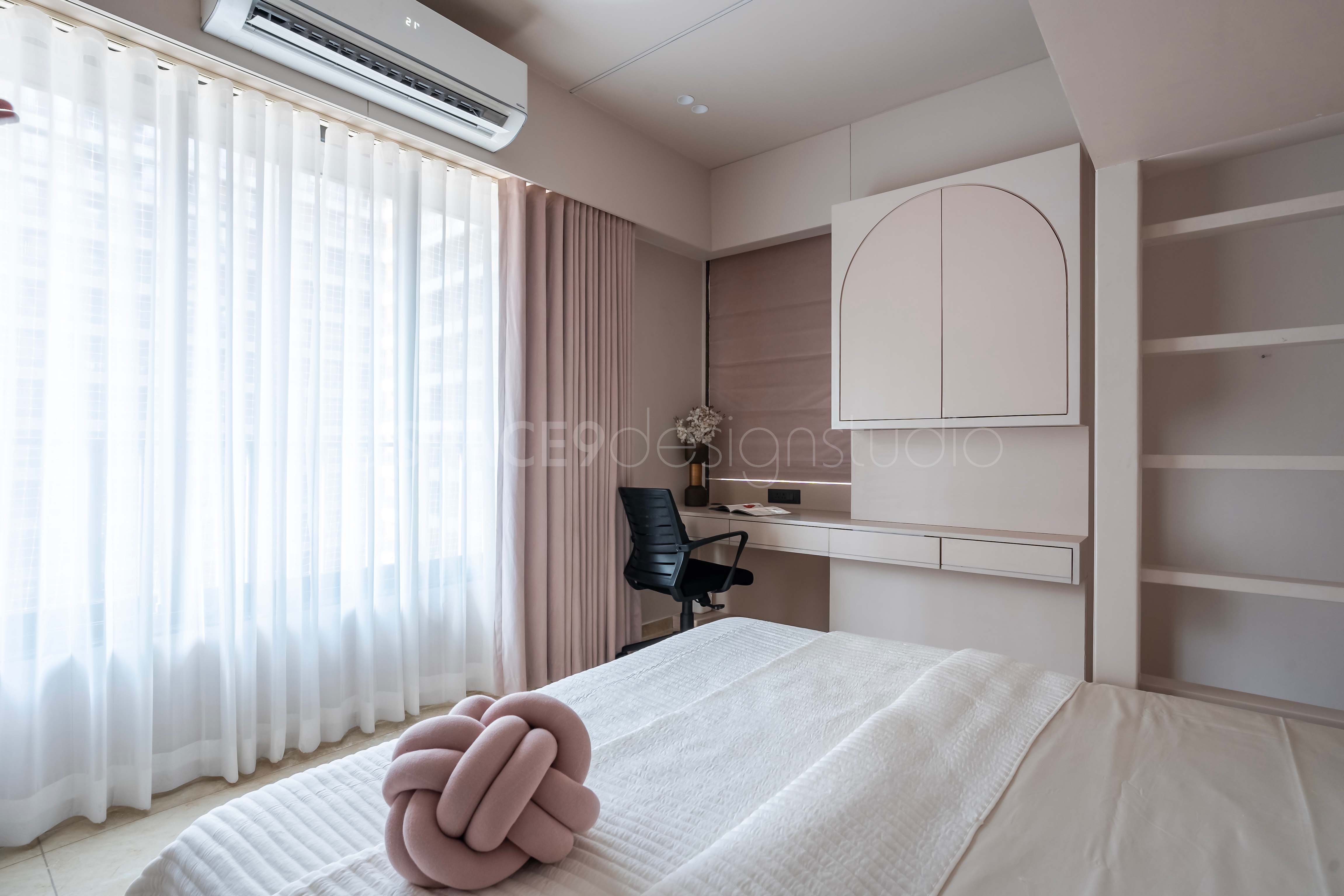 The clients approached us to transform their 3BHK apartment into a serene, functional, and modern home that balances aesthetics with practicality. Their vision focused on maximizing natural light, optimizing space, and creating a timeless, soft-modern look with clean lines, warm wood tones, neutral hues, and minimal clutter. Each space was to reflect personality—calm and comfort in the master bedroom, playful creativity in the kid’s room, dual-use functionality in the guest room/study, and openness in the living–dining–kitchen area.