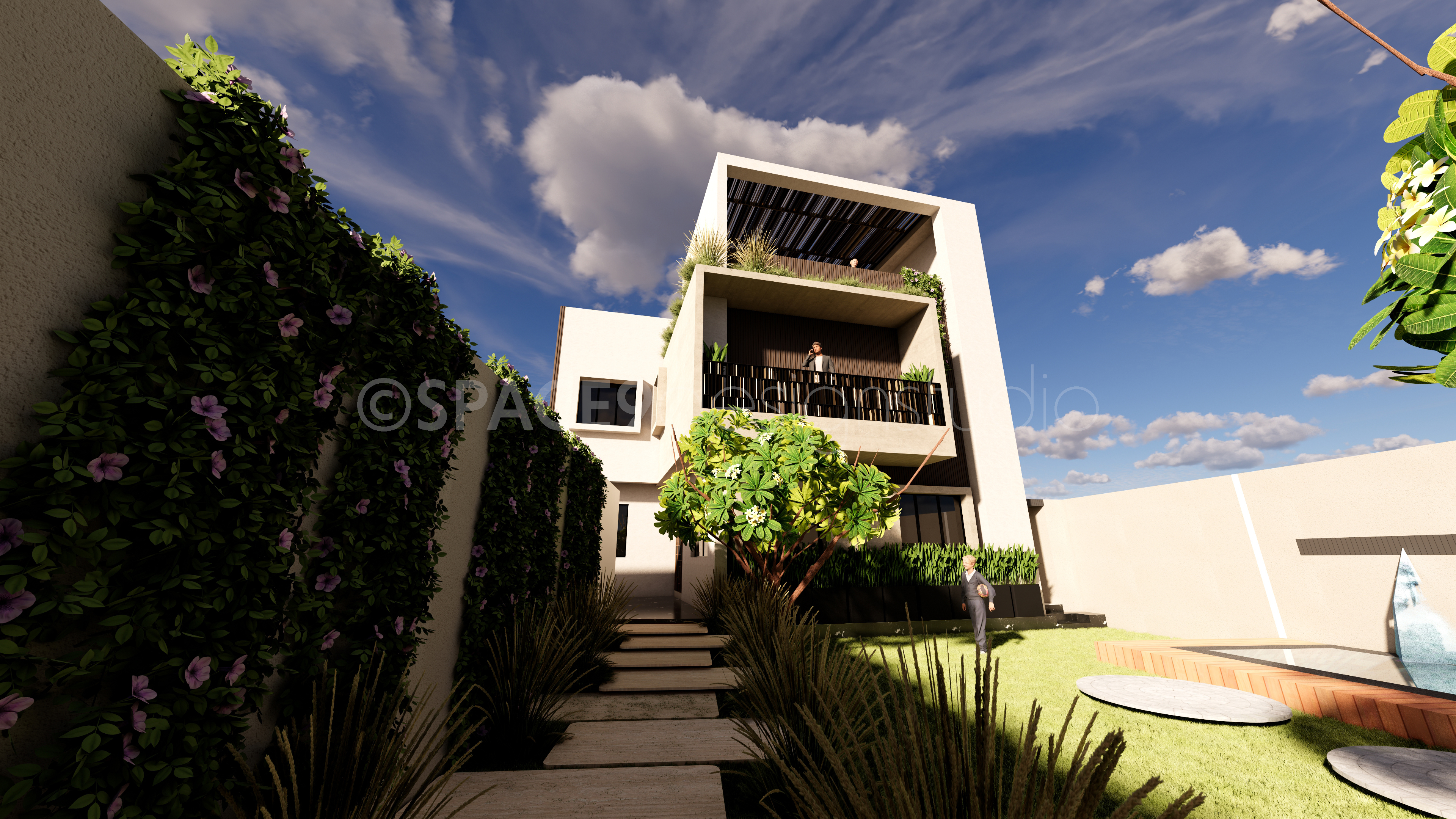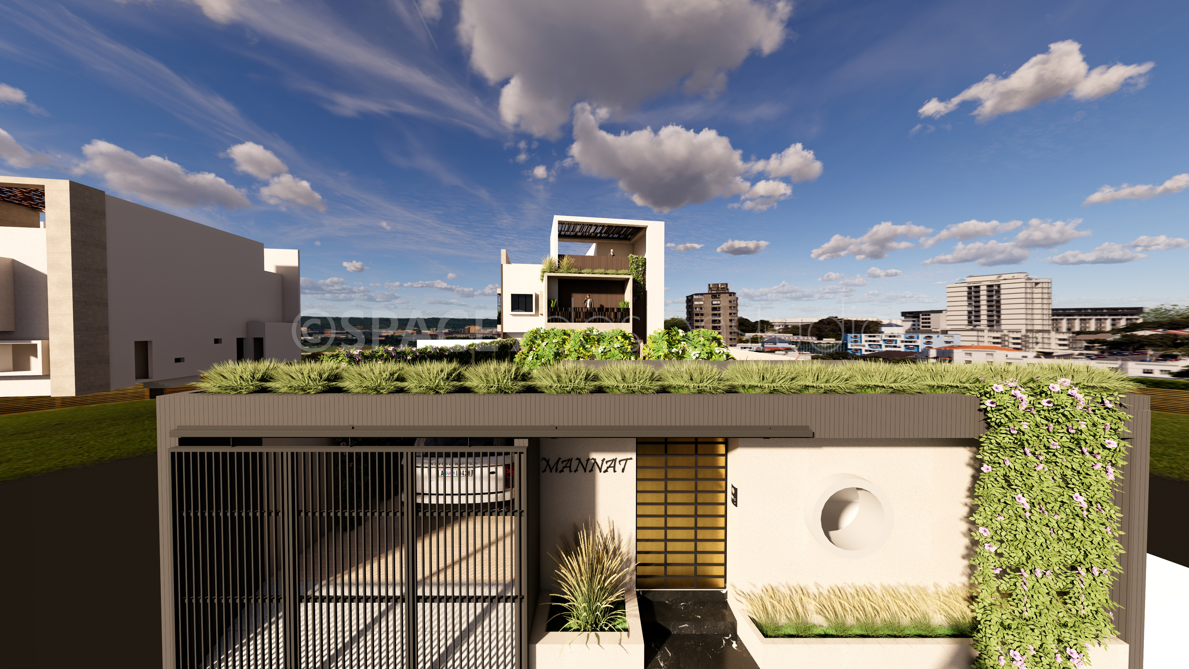 Welcome to our latest architectural marvel — a luxurious 5 BHK modern bungalow designed on a 4000 sq. ft. plot, seamlessly blending elegance with functionality. This two-storey residence is crafted to offer a serene and sophisticated lifestyle, centered on a beautifully landscaped central courtyard that brings natural light and ventilation to the heart of the home. The thoughtfully designed layout includes a spacious garden-facing kitchen, ensuring an inspiring culinary experience while enjoying views of lush greenery. Each bedroom is meticulously planned for privacy and comfort, while expansive living and dining areas encourage togetherness and relaxation.