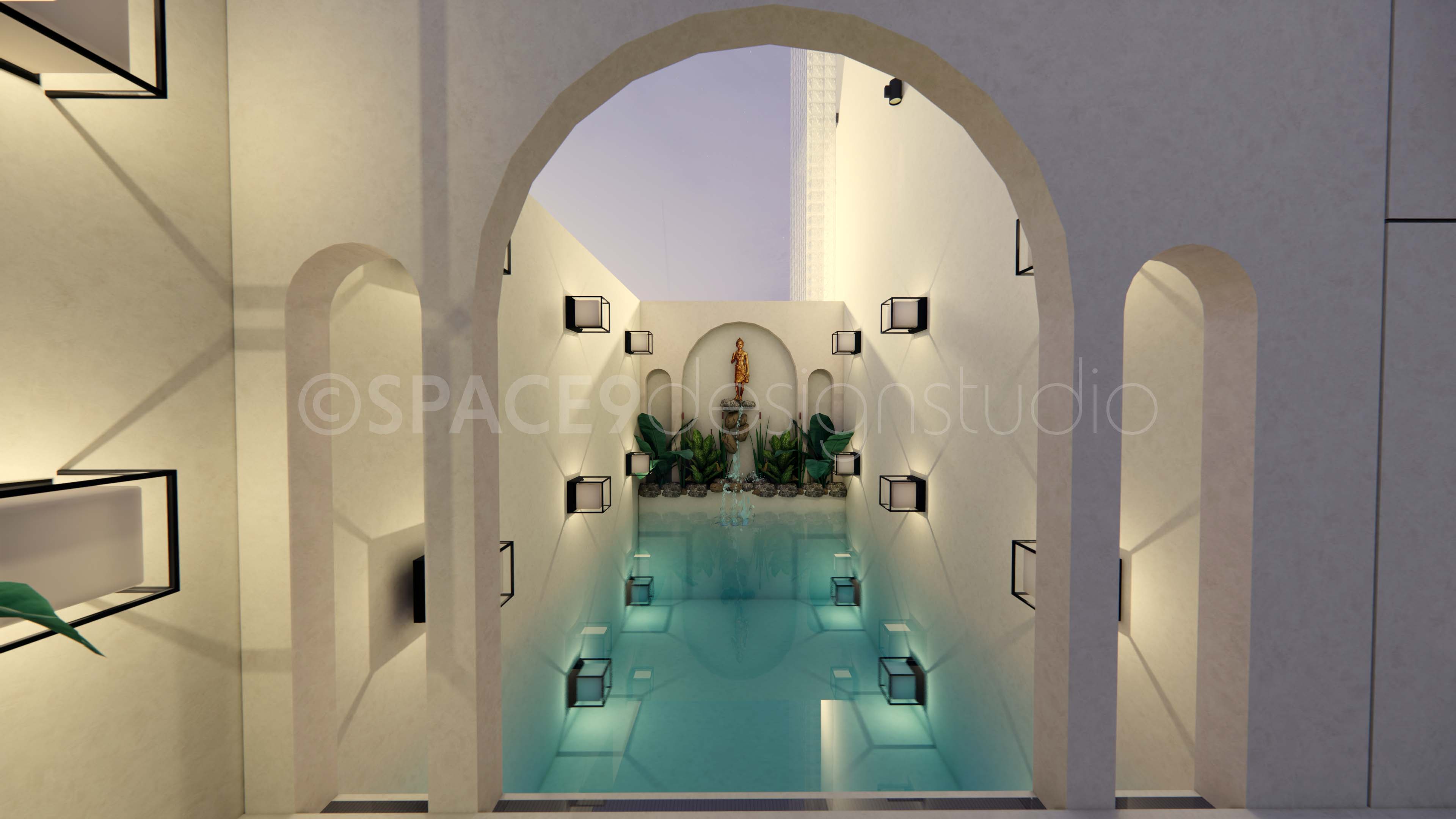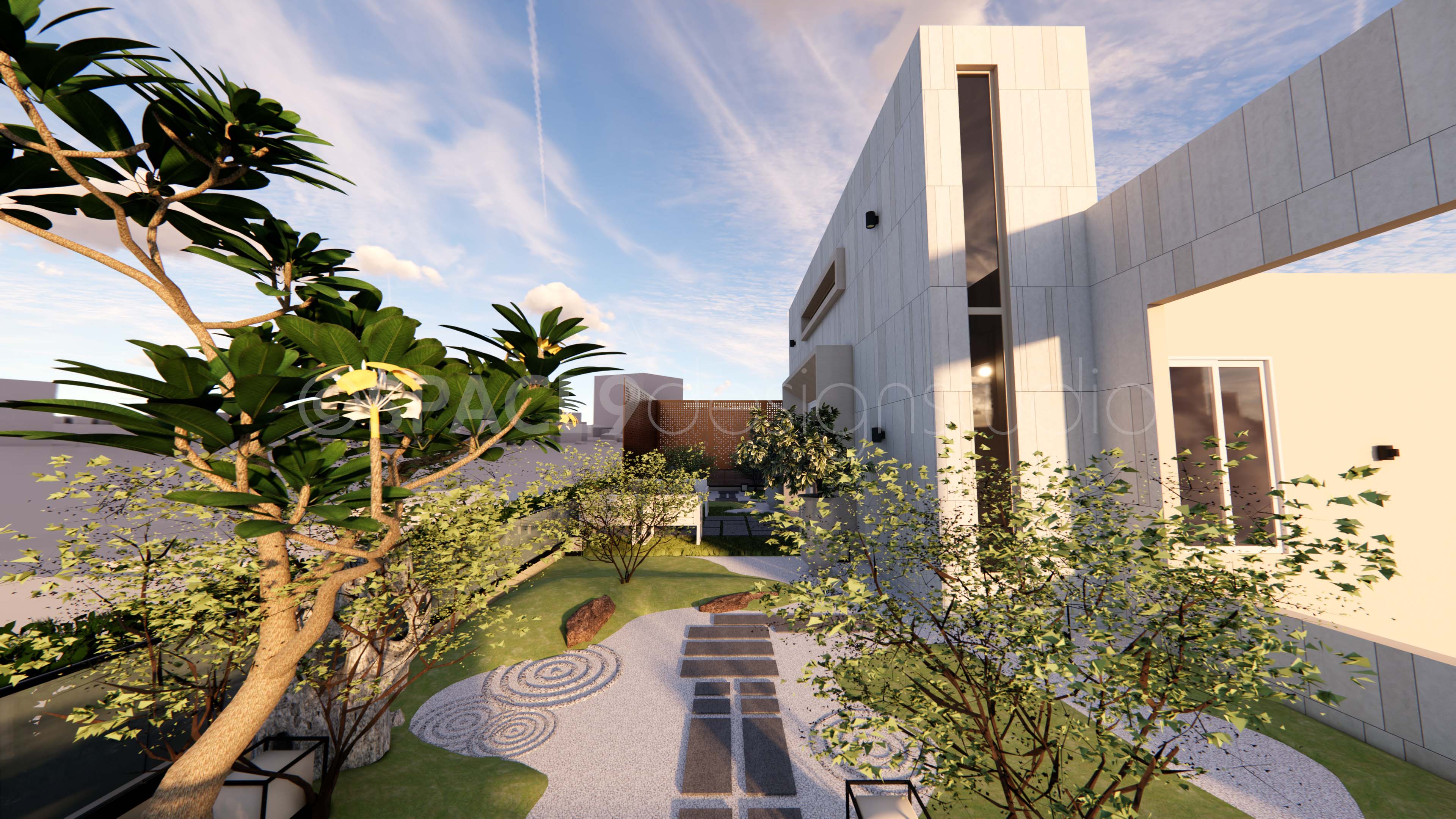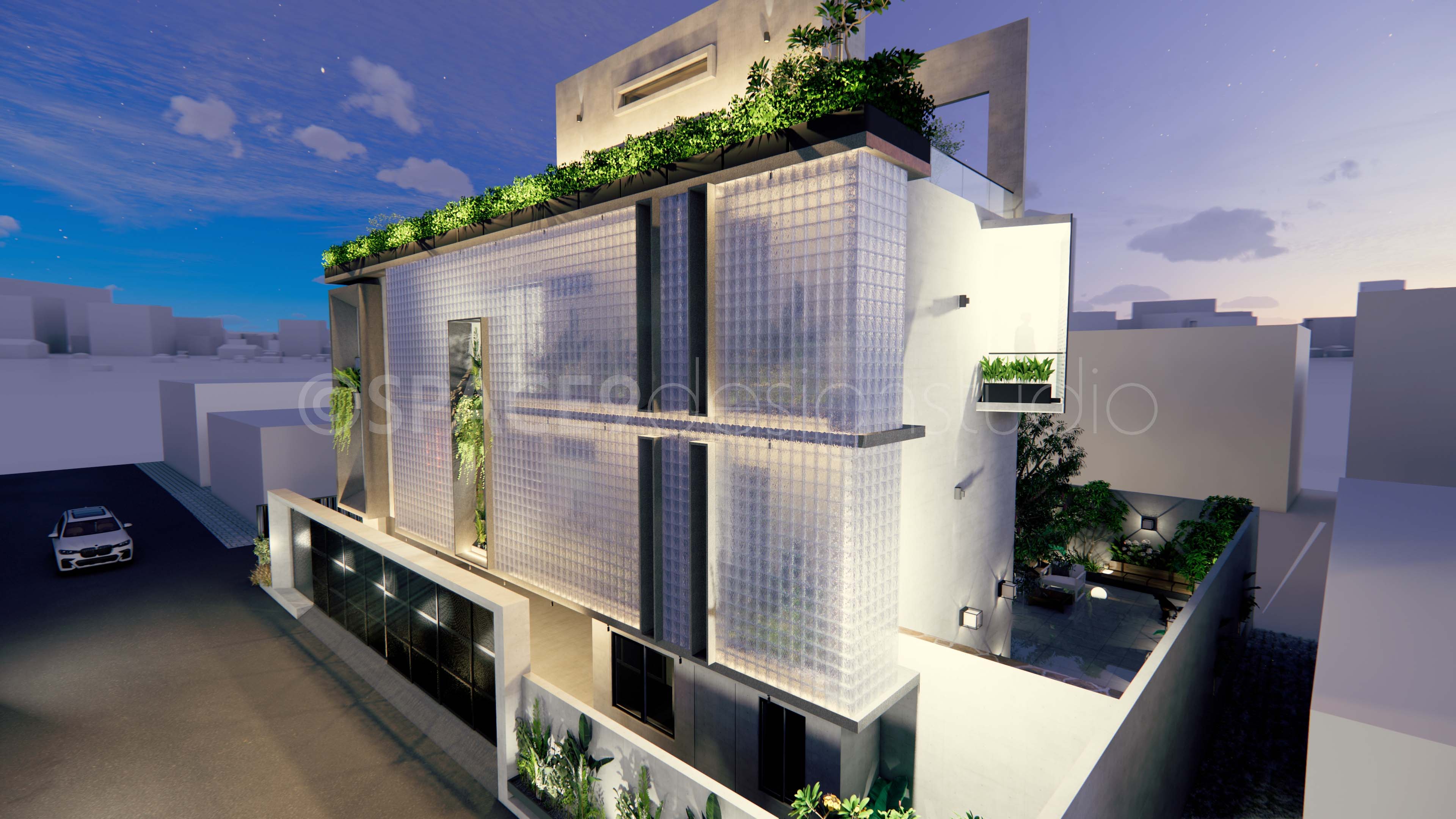 Nestled in a serene landscape, this stunning 10,000 sq. Ft. Bungalow seamlessly blends modern elegance with contemporary design. The striking glass block façade not only enhances the aesthetic appeal but also floods the interiors with natural light, creating an inviting atmosphere throughout the home. Central to the design is a beautifully landscaped courtyard featuring a majestic mango tree, providing a tranquil focal point and a connection to nature. Adjacent to the courtyard lies an exquisite swimming pool, harmoniously integrated into the design, offering a perfect retreat for relaxation and leisure.