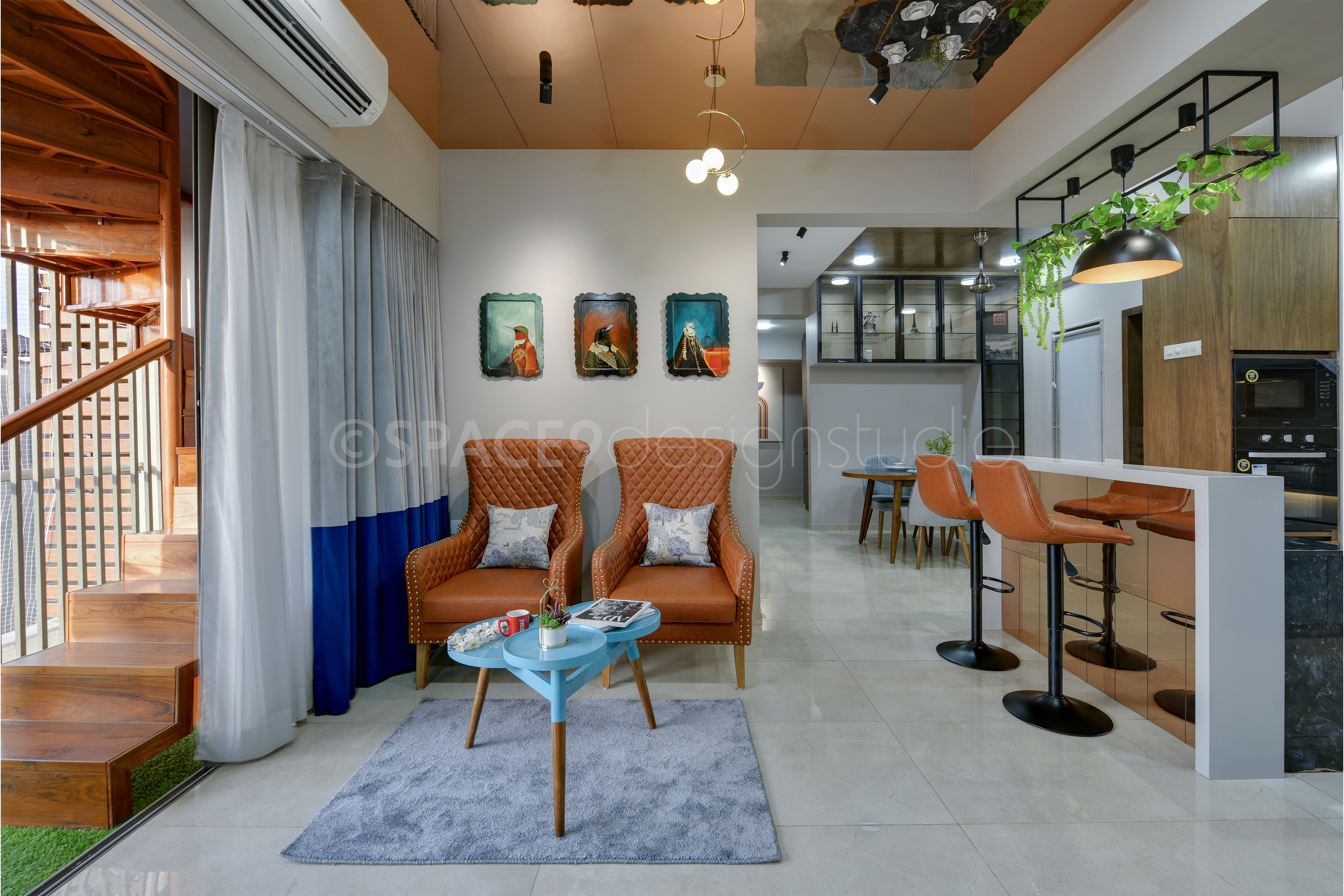 Completing the home, the lounge areas are furnished with cozy seating, layered lighting, and a fluid connection to the balcony, bringing nature indoors. The terrace garden enhances the apartment’s character with patterned flooring, lush planters, and green pockets for a refreshing escape. Together, these elements create a perfect blend of luxury, practicality, and creativity—making this apartment a true reflection of modern living.