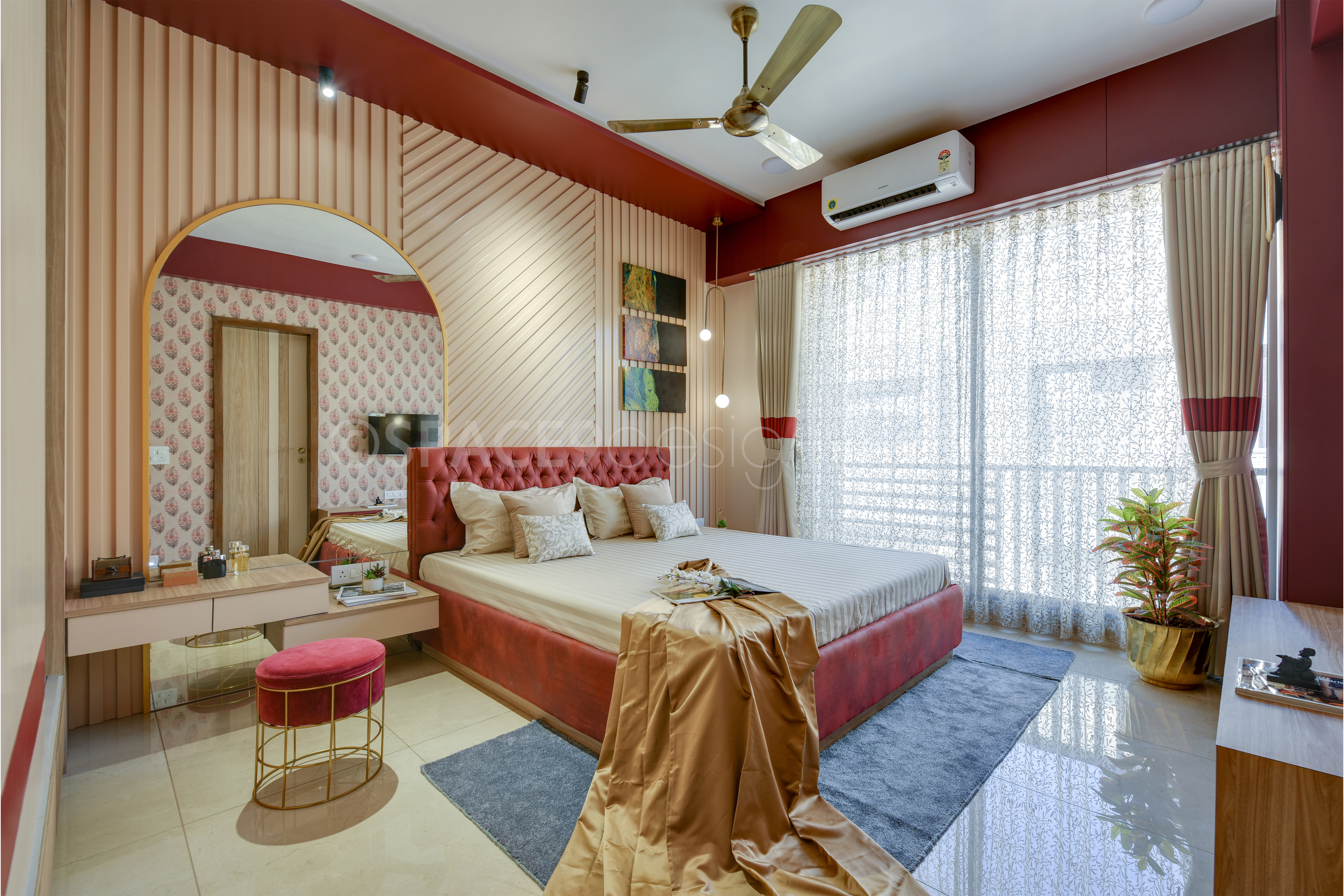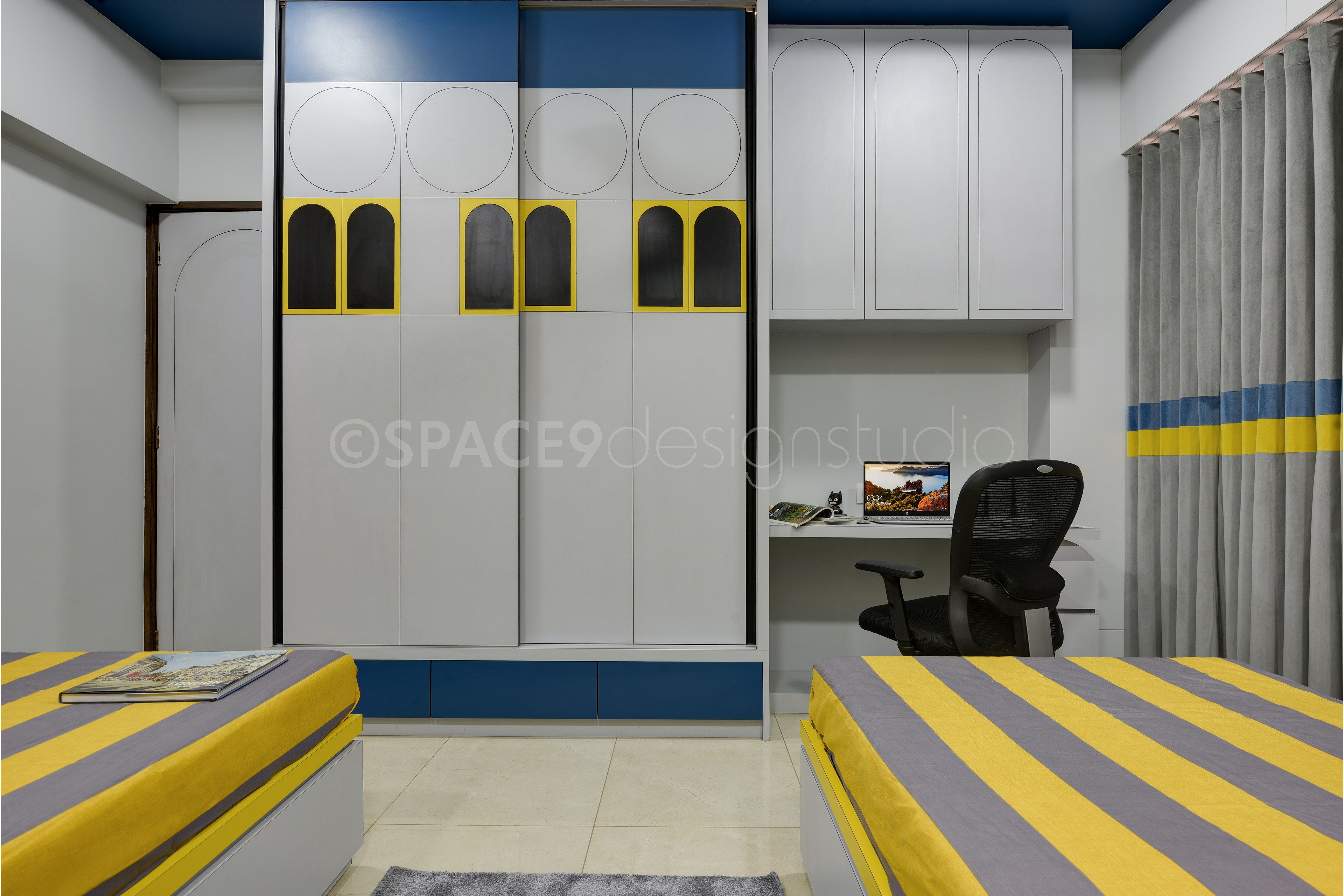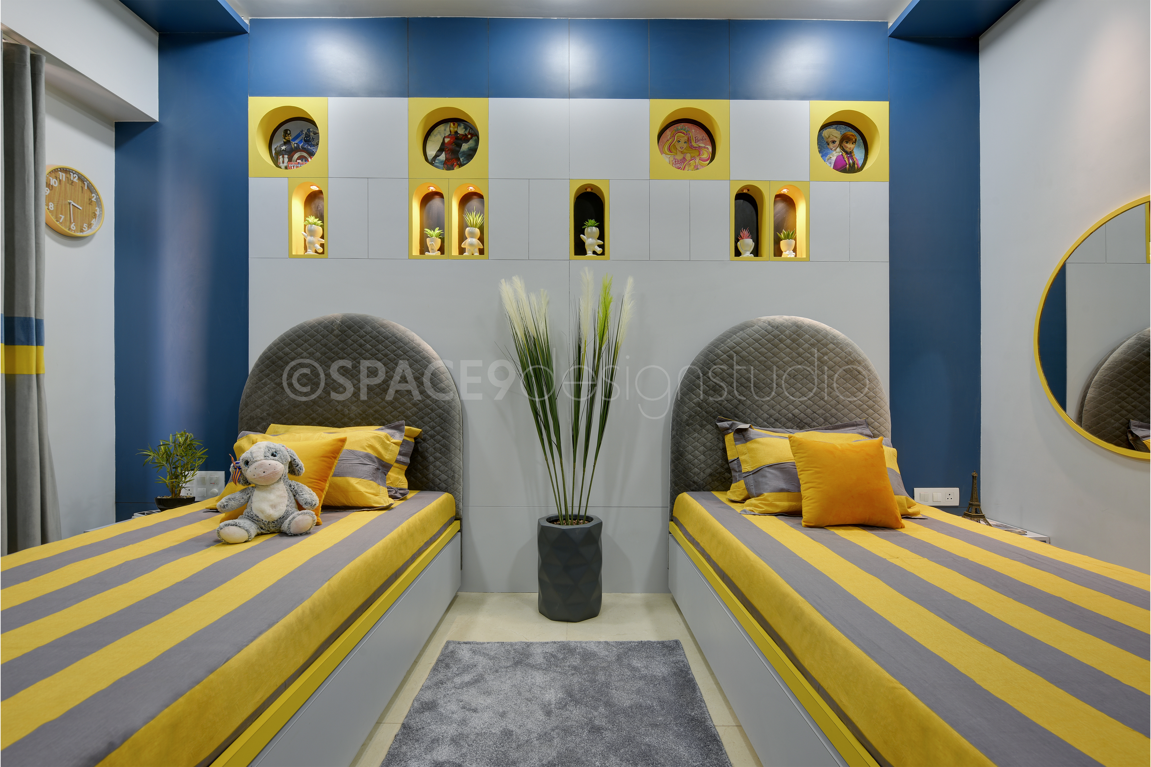 The bedrooms are individually styled to suit varied moods and needs—from playful, colourful designs with bold patterns and smart storage for children, to a serene master suite with textured headboards, luxurious fabrics, and seamless wardrobes. The living room exudes charm with neutral palettes highlighted by pops of color through accent chairs, cushions, and wall décor, making it both welcoming and stylish. An open-plan kitchen and dining zone further elevate the experience, featuring glossy cabinetry, streamlined countertops, and a chic breakfast counter that adds urban flair.