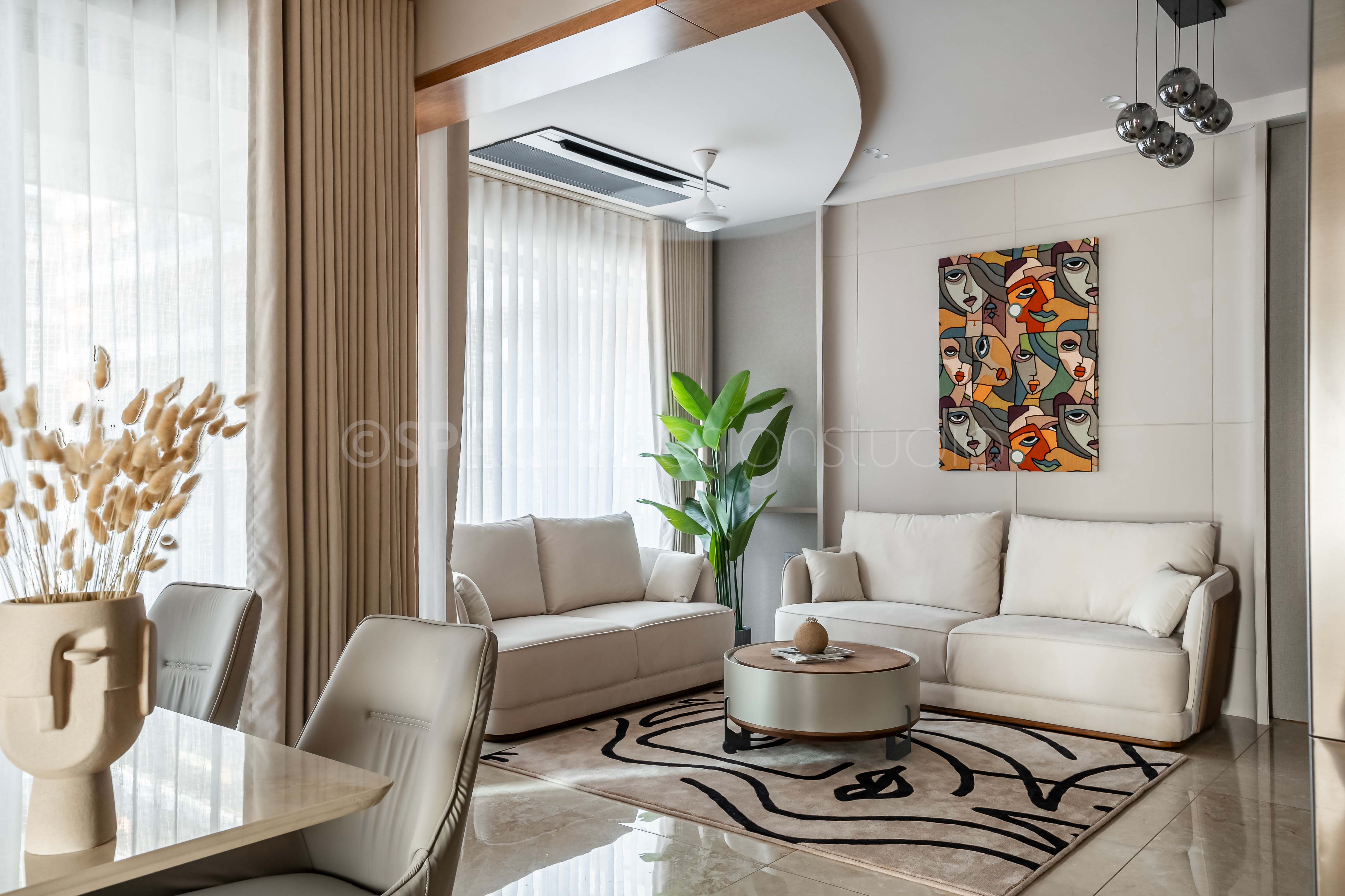 Our design concept centered around harmony and spatial flow, using a base palette of beiges, whites, greys, and wood finishes. We introduced texture through fabric paneling, subtle wall finishes, and carefully curated decor. Every room was designed with zoning efficiency and balanced composition in mind.