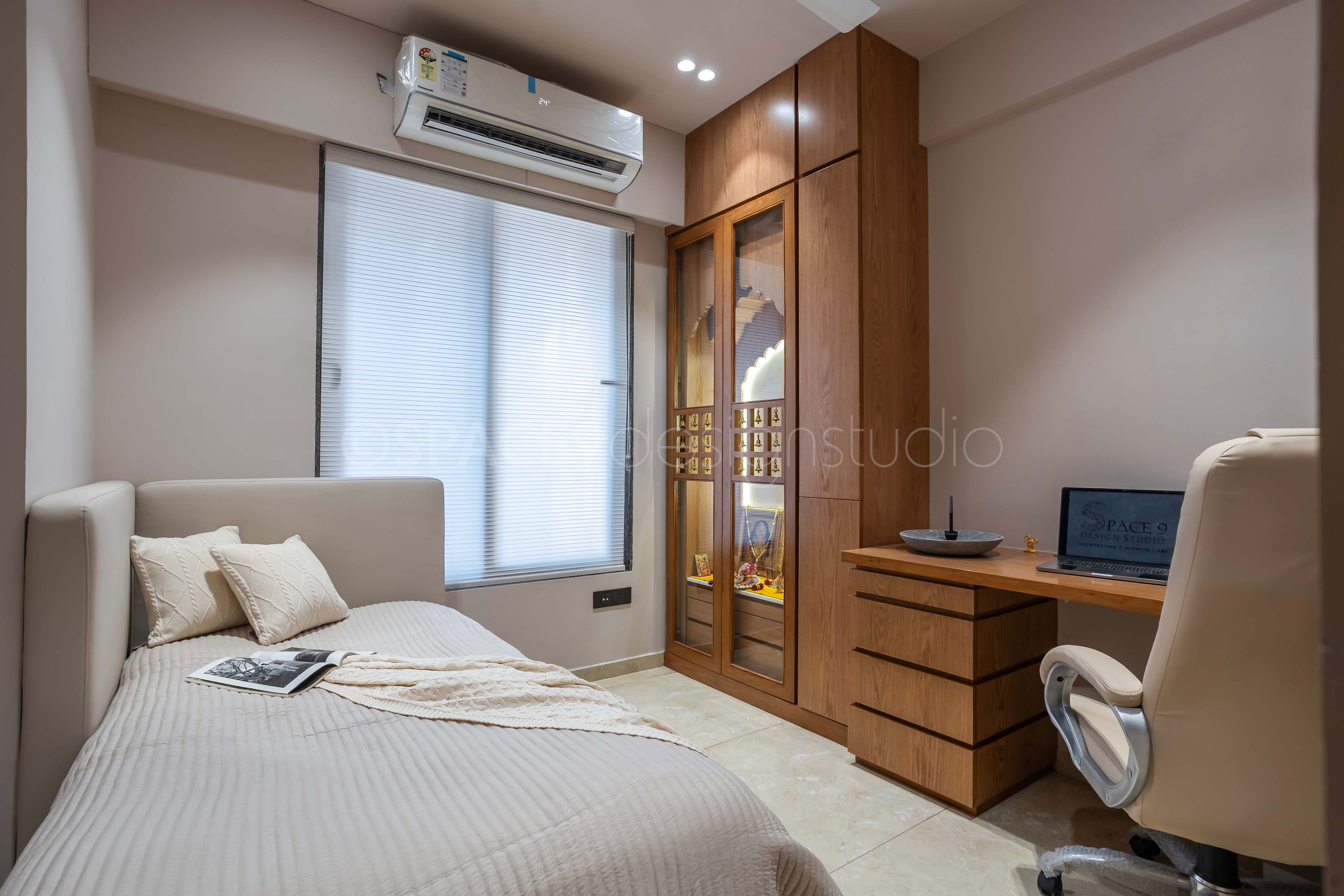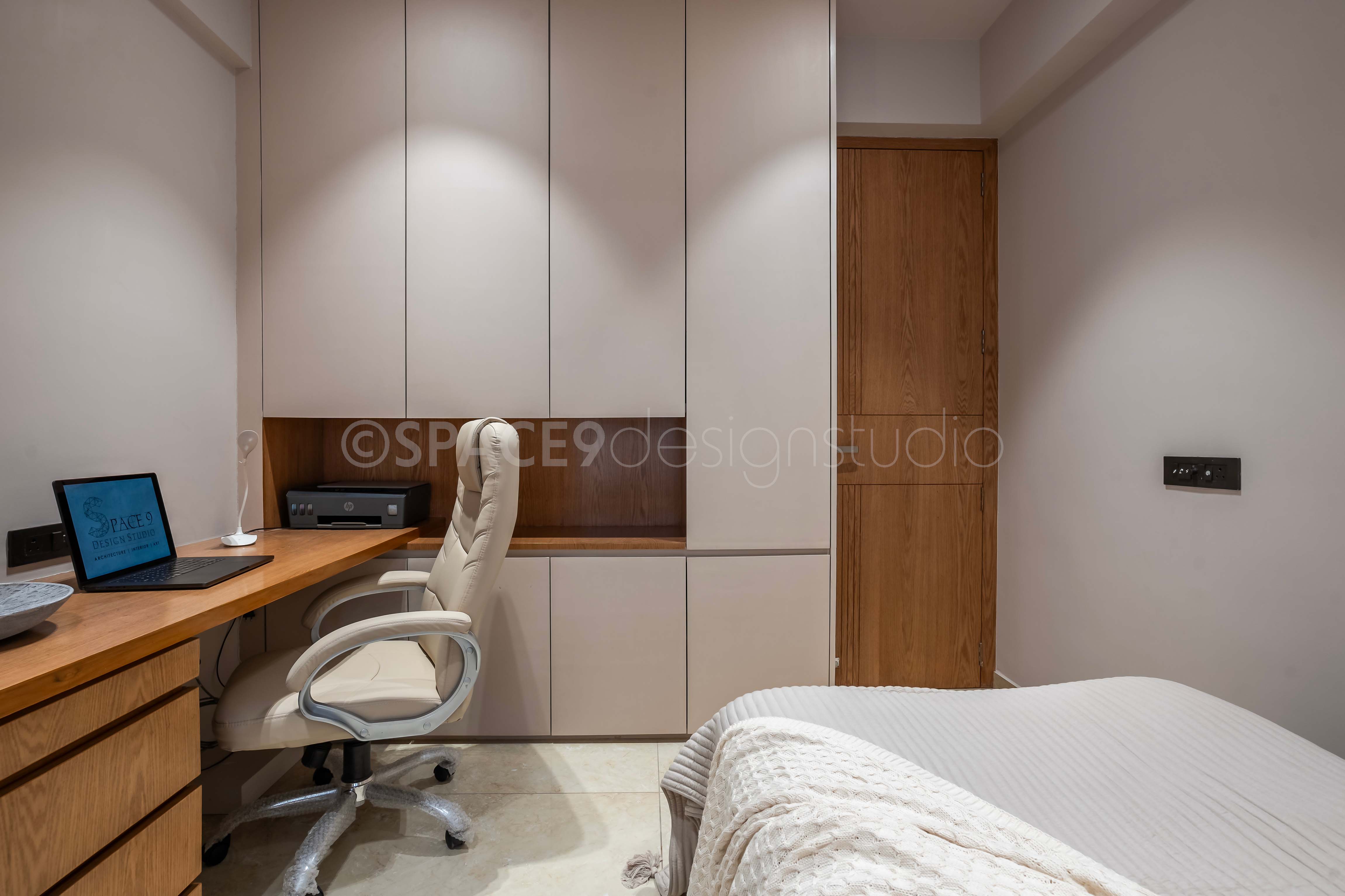 The clients approached us to transform their 3BHK apartment into a serene, functional, and modern home that balances aesthetics with practicality. Their vision focused on maximizing natural light, optimizing space, and creating a timeless, soft-modern look with clean lines, warm wood tones, neutral hues, and minimal clutter. Each space was to reflect personality—calm and comfort in the master bedroom, playful creativity in the kid’s room, dual-use functionality in the guest room/study, and openness in the living–dining–kitchen area.